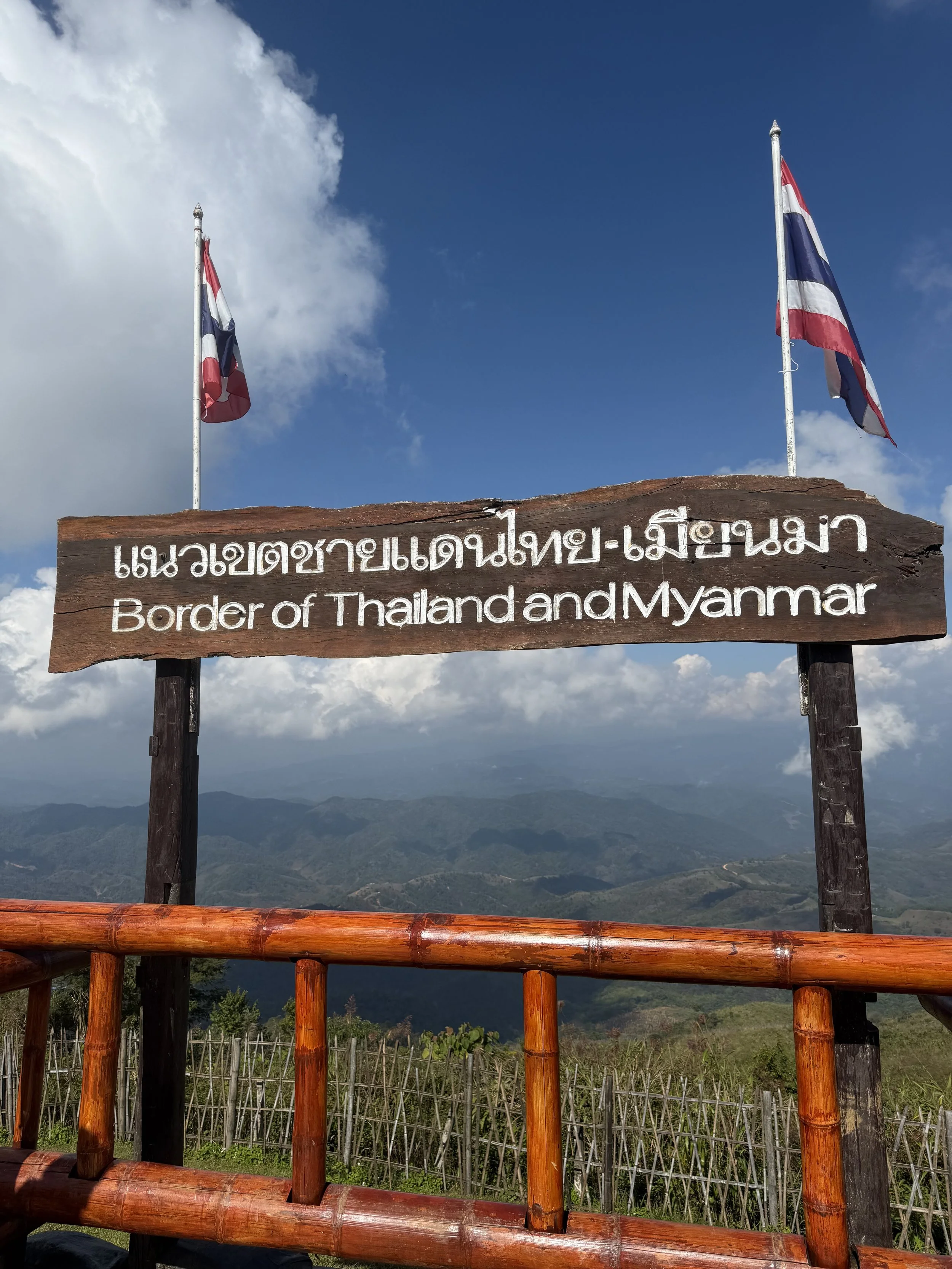 The next morning, we drove north toward the border of Myanmar, stopping at a viewpoint overlooking old barracks from when Thai and Burmese forces once fought along the border. Standing there, it’s hard not to feel the history — this region has seen centuries of conflict, trade, and cultural exchange.